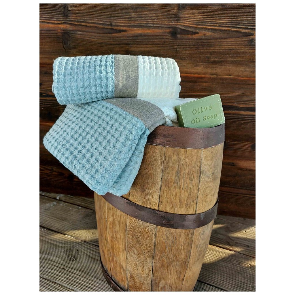 Koupelnové doplňky Fresh Up with Blue - lněná osuška nebo ručník.