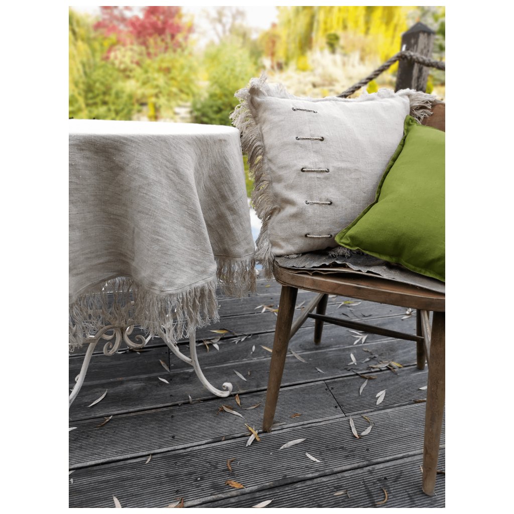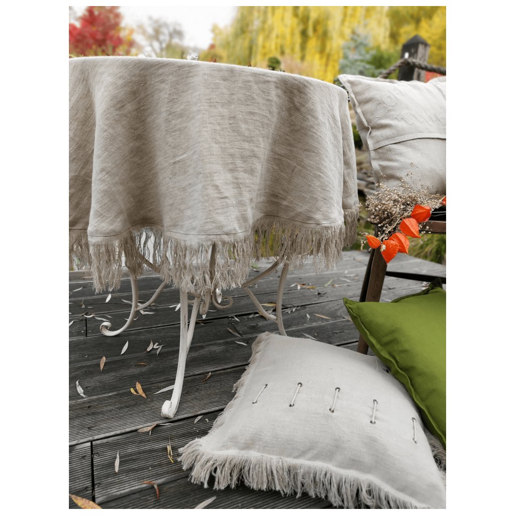 Lněný ubrus je ušitý z lnu vyšší gramáže (330 g / m2), který svým vzhledem působí, jakoby pocházel z dávných dob.