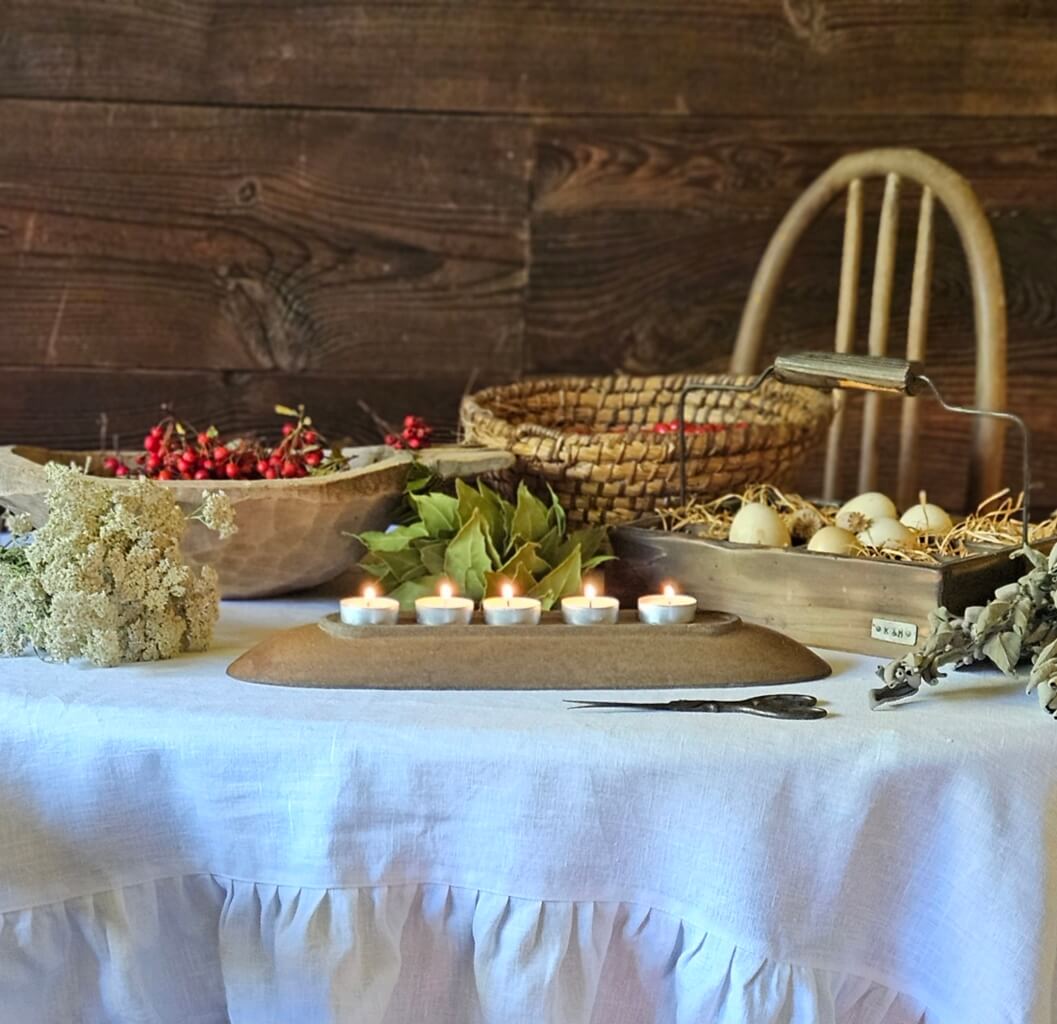 Ušili jsme pro vás tento krásný lněný ubrus s romantickým volánem.